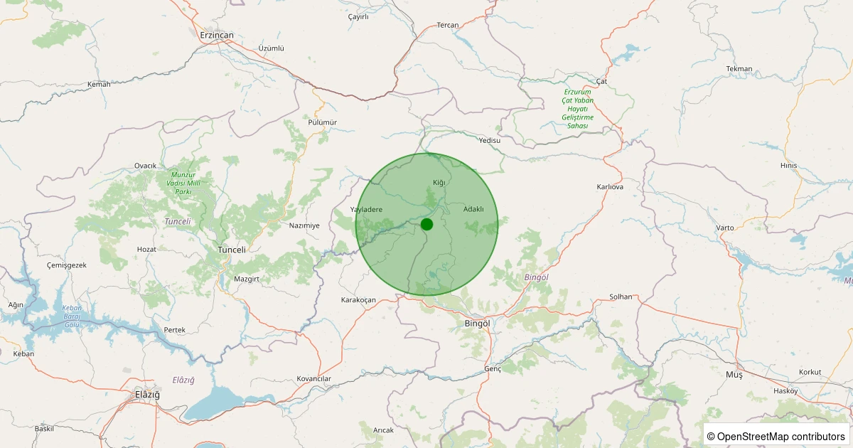 Son 7 gün içinde Kiğı - Alagöz Köyü noktasından 100 km yarıçap içerisinde meydana gelen diğer depremler: