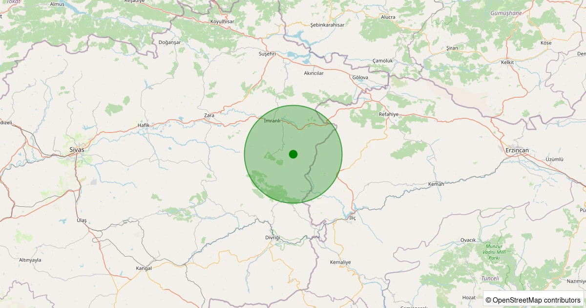 Son 7 gün içinde İmranlı - Türkyenice(Akoluk) Köyü noktasından 100 km yarıçap içerisinde meydana gelen diğer depremler: