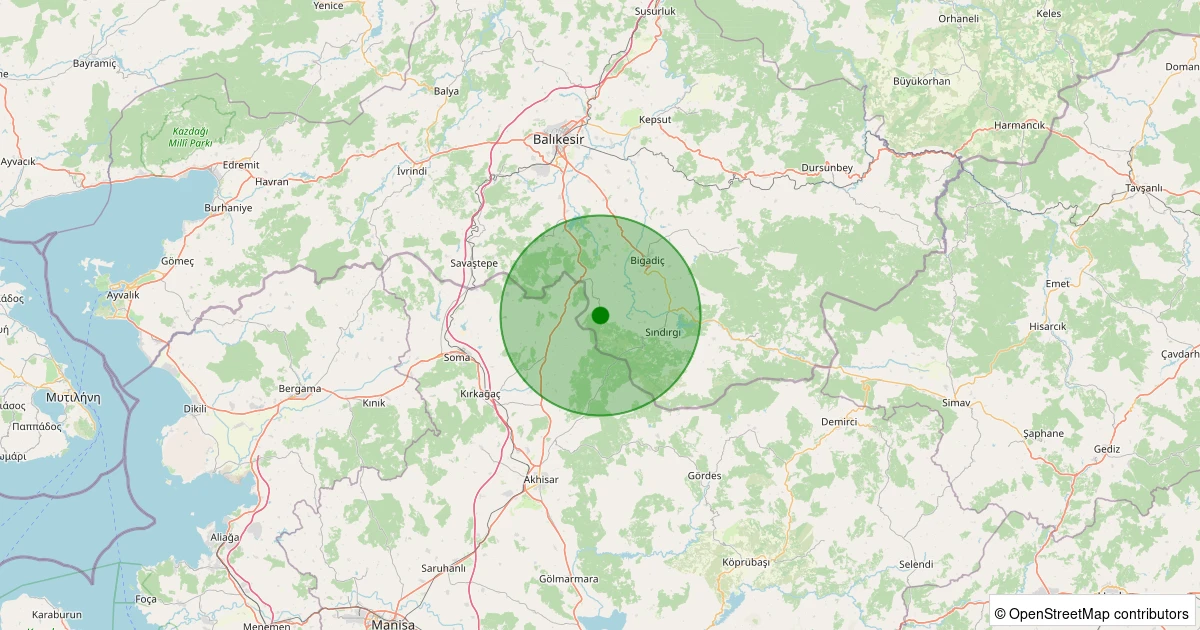 Son 7 gün içinde Sındırgı - Eğridere noktasından 100 km yarıçap içerisinde meydana gelen diğer depremler: