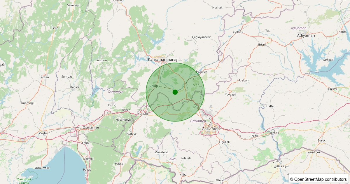 Son 7 gün içinde Kahramanmaraş noktasından 100 km yarıçap içerisinde meydana gelen diğer depremler: