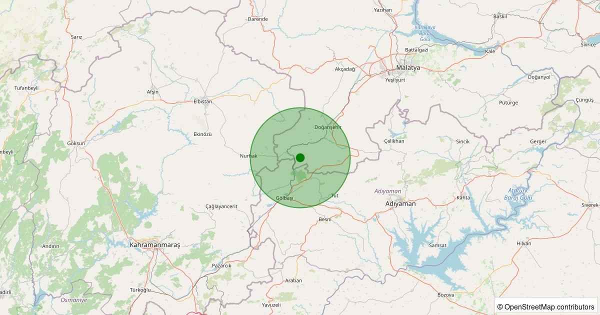 Son 7 gün içinde Doğanşehir - Örencik noktasından 100 km yarıçap içerisinde meydana gelen diğer depremler: