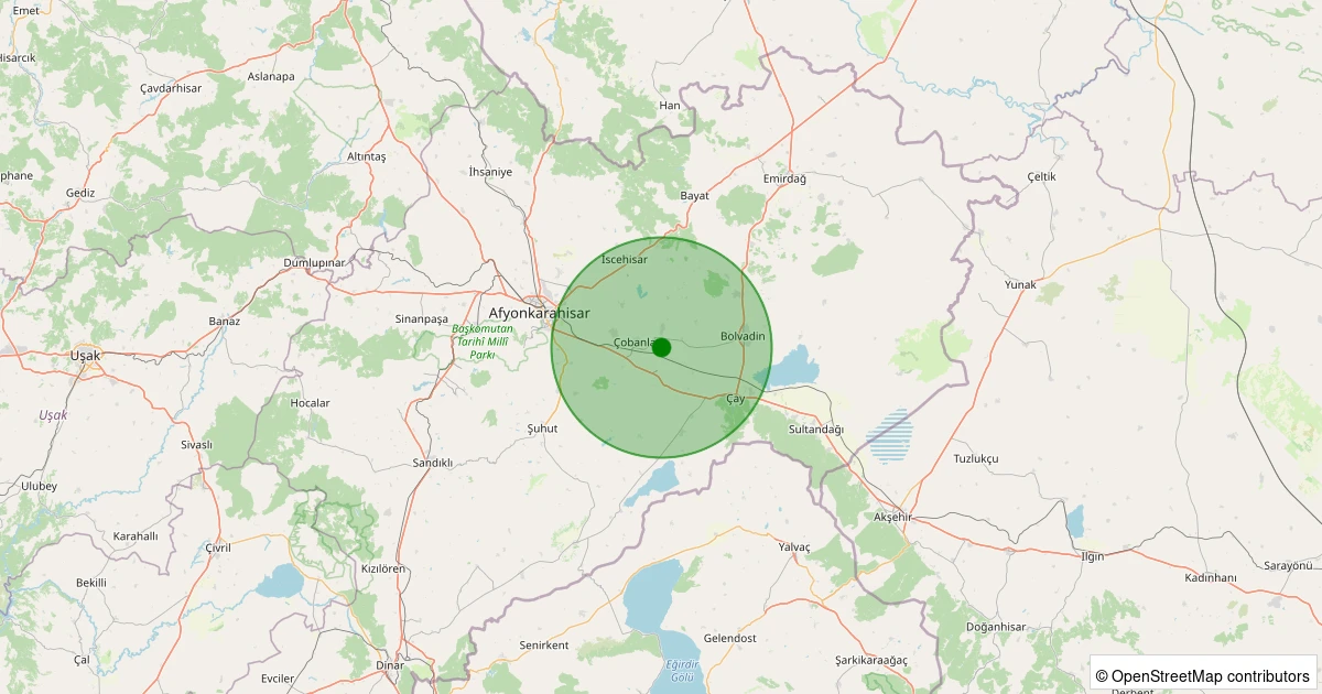 Son 7 gün içinde Çobanlar - Gölcük noktasından 100 km yarıçap içerisinde meydana gelen diğer depremler: