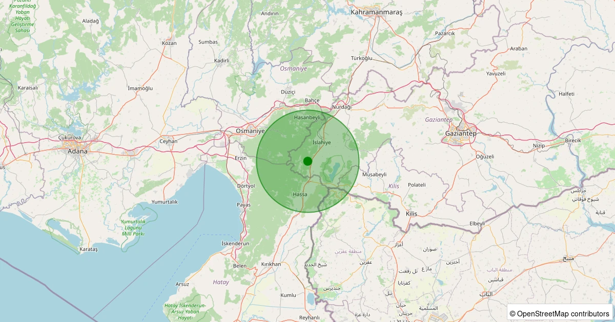Son 7 gün içinde İslahiye - Kerküt noktasından 100 km yarıçap içerisinde meydana gelen diğer depremler: