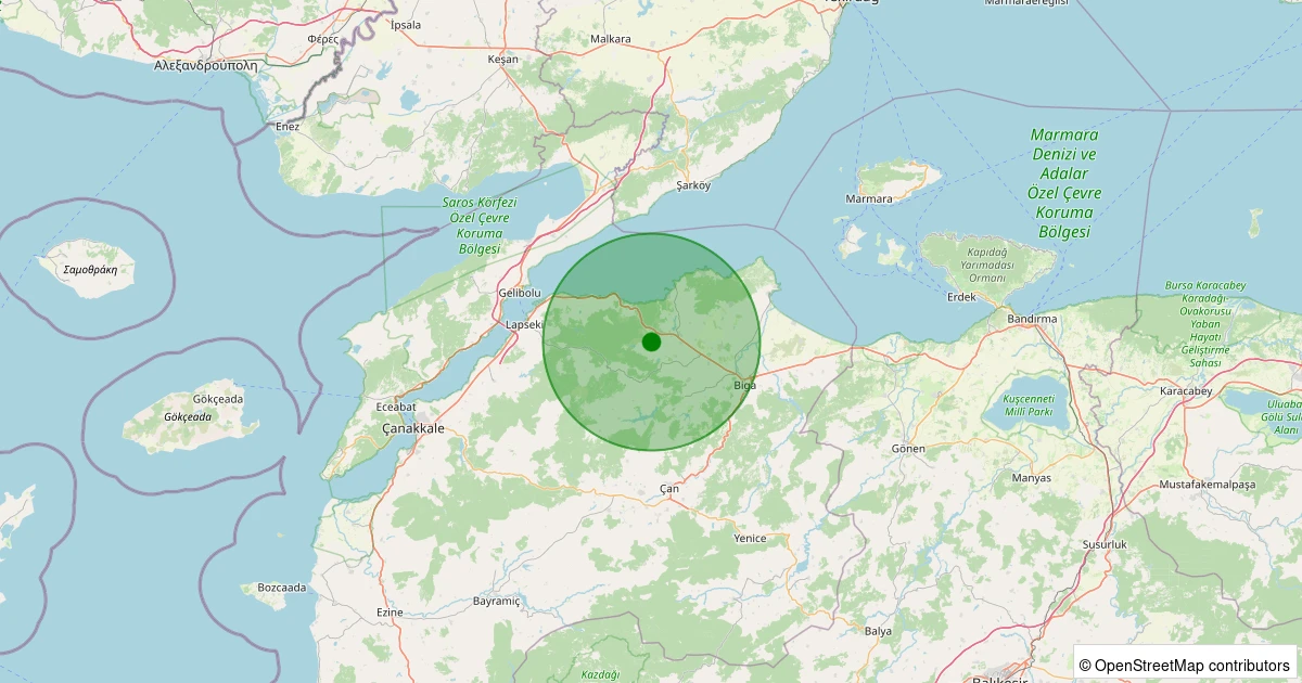 Son 7 gün içinde Lapseki - Dişbudak Köyü noktasından 100 km yarıçap içerisinde meydana gelen diğer depremler: