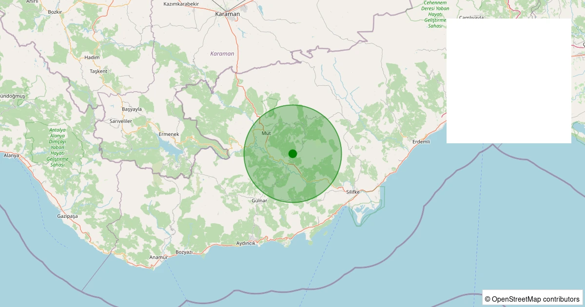 Son 7 gün içinde Mut - Göcekler Köyü noktasından 100 km yarıçap içerisinde meydana gelen diğer depremler: