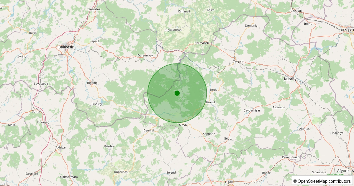 Son 7 gün içinde Simav - Ortacı Köyü noktasından 100 km yarıçap içerisinde meydana gelen diğer depremler:
