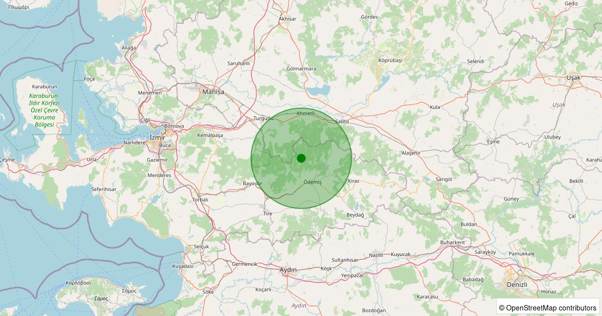 Son 7 gün içinde Ödemiş - Derebebekler noktasından 100 km yarıçap içerisinde meydana gelen diğer depremler: