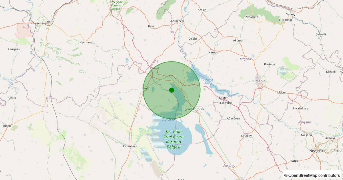 Son bir hafta içerisinde Konya şehri Kulu noktasından 100 km yarıçap içerisinde toplamda 11 deprem kaydedilmiştir. Bu depremlerden en büyüğü 2.1 büyüklüğünde ve en sığ odaklısı 3.90 kilometre derinlikte gerçekleşmiştir.