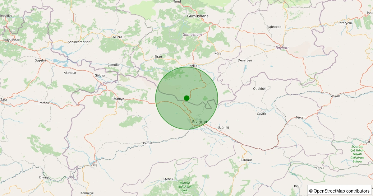 Son 7 gün içinde Kelkit - Kömür Köyü noktasından 100 km yarıçap içerisinde meydana gelen diğer depremler: