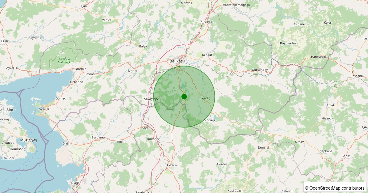 Son 7 gün içinde Altıeylül - Ayvacık noktasından 100 km yarıçap içerisinde meydana gelen diğer depremler: