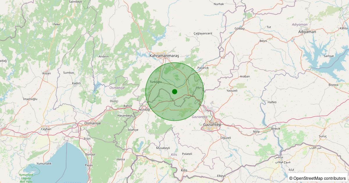 Son 7 gün içinde Kahramanmaraş noktasından 100 km yarıçap içerisinde meydana gelen diğer depremler: