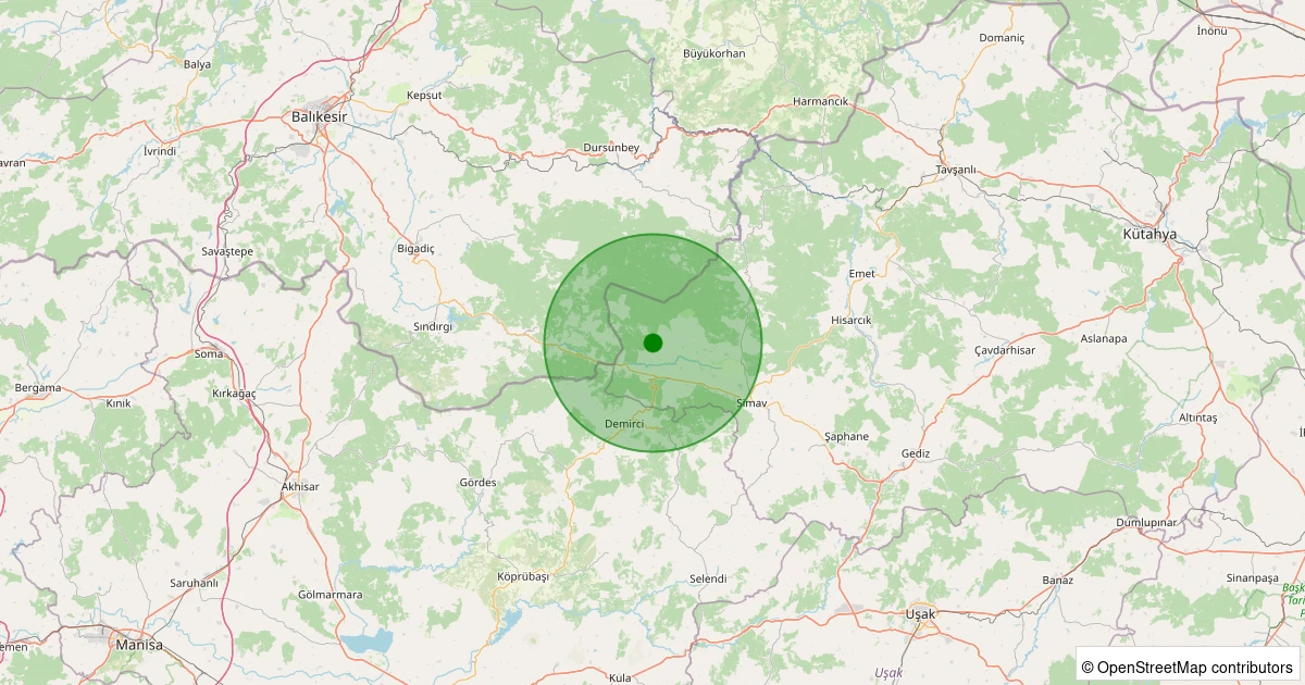 Son 7 gün içinde Simav - Akpınar Köyü noktasından 100 km yarıçap içerisinde meydana gelen diğer depremler: