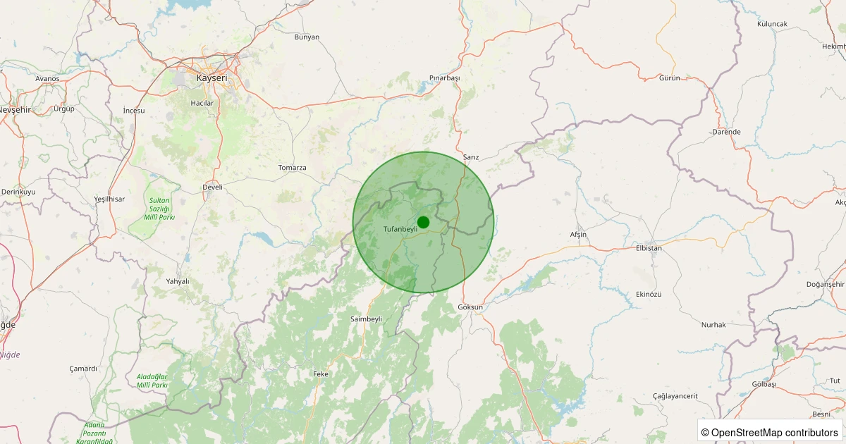 Son 7 gün içinde Tufanbeyli - Bolatpınar noktasından 100 km yarıçap içerisinde meydana gelen diğer depremler: