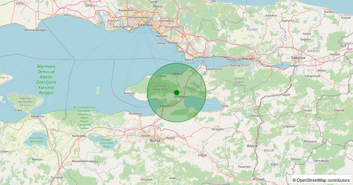 Son 7 gün içinde Orhangazi - Hamzalı noktasından 100 km yarıçap içerisinde meydana gelen diğer depremler:
