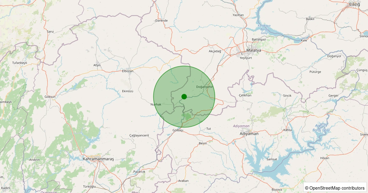 Son 7 gün içinde Doğanşehir - Küçüklü noktasından 100 km yarıçap içerisinde meydana gelen diğer depremler: