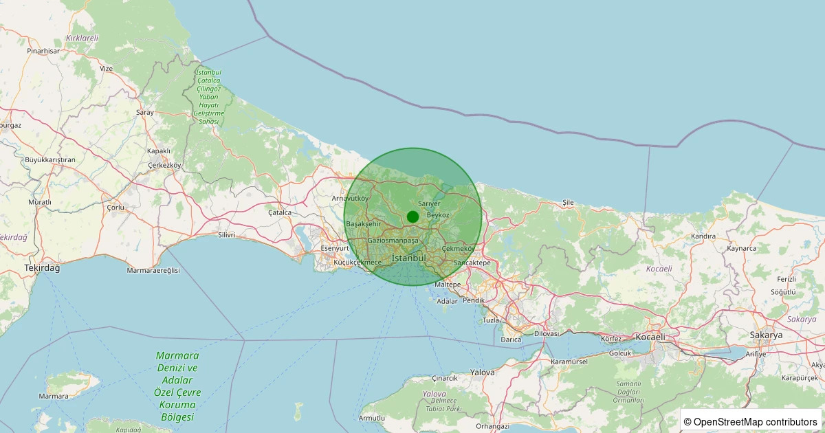 Son 7 gün içinde Sarıyer - İ.Ayazağa noktasından 100 km yarıçap içerisinde meydana gelen diğer depremler: