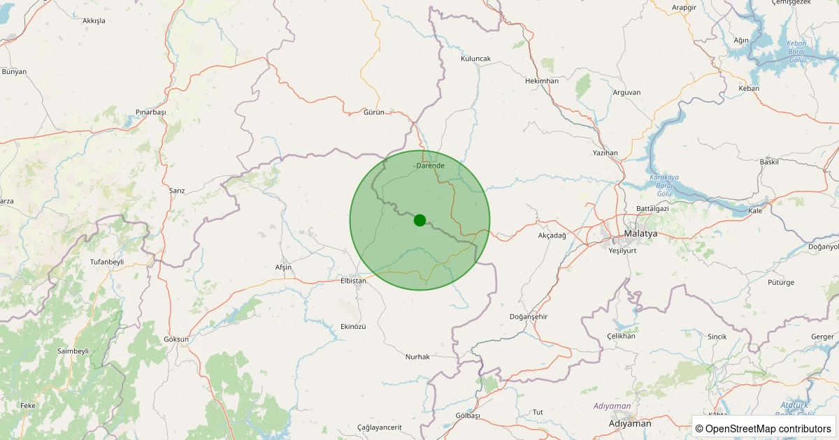 Son 7 gün içinde Elbistan - Yalıntaş Köyü noktasından 100 km yarıçap içerisinde meydana gelen diğer depremler: