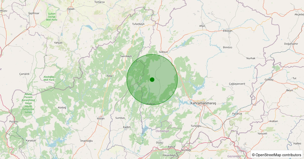 Son 7 gün içinde Andırın - Geben/Çamlıca noktasından 100 km yarıçap içerisinde meydana gelen diğer depremler:
