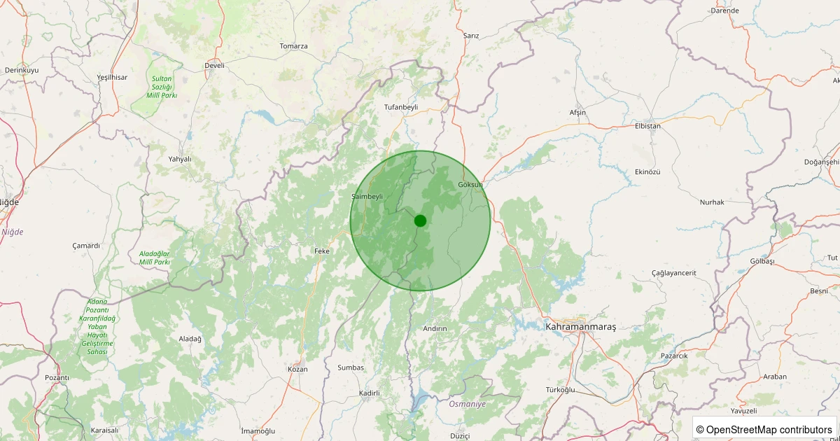 Son 7 gün içinde Göksun - Hacıkodal noktasından 100 km yarıçap içerisinde meydana gelen diğer depremler: