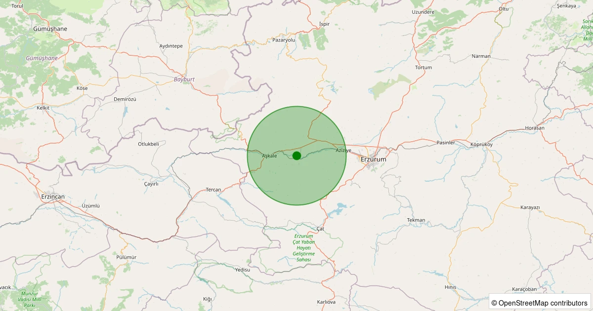 Son 7 gün içinde Aşkale - Karabıyık noktasından 100 km yarıçap içerisinde meydana gelen diğer depremler: