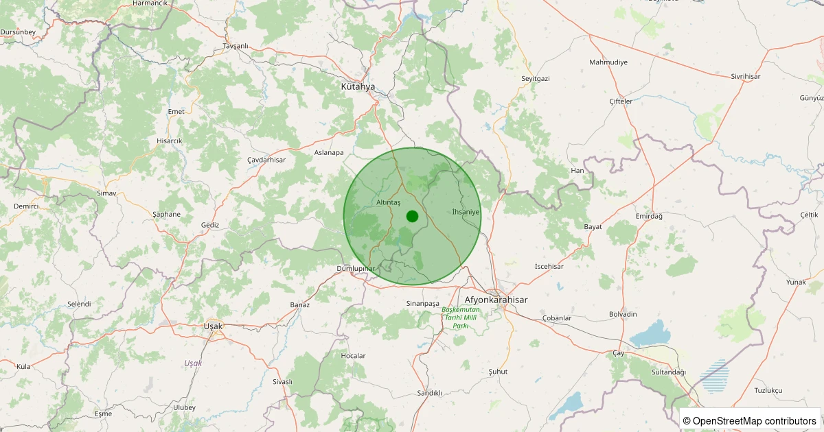 Son 7 gün içinde Altıntaş - Yolçatı Köyü noktasından 100 km yarıçap içerisinde meydana gelen diğer depremler: