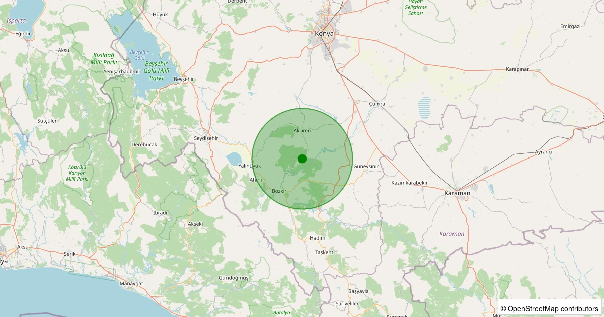Son bir hafta içerisinde Konya şehri Akören - Dutlu noktasından 100 km yarıçap içerisinde toplamda 16 deprem kaydedilmiştir. Bu depremlerden en büyüğü 3.4 büyüklüğünde ve en sığ odaklısı 4.70 kilometre derinlikte gerçekleşmiştir.