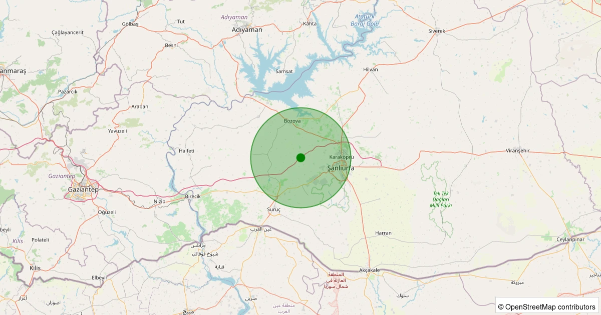 Son bir hafta içerisinde Şanlıurfa şehri Karaköprü - Örcünlü noktasından 100 km yarıçap içerisinde toplamda 45 deprem kaydedilmiştir. Bu depremlerden en büyüğü 2.6 büyüklüğünde ve en sığ odaklısı 0.50 kilometre derinlikte gerçekleşmiştir.