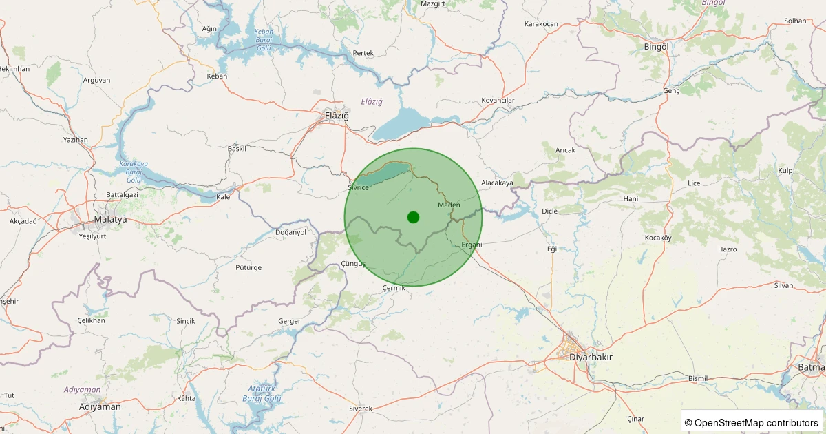 Son 7 gün içinde Maden - Topaluşağı Köyü noktasından 100 km yarıçap içerisinde meydana gelen diğer depremler:
