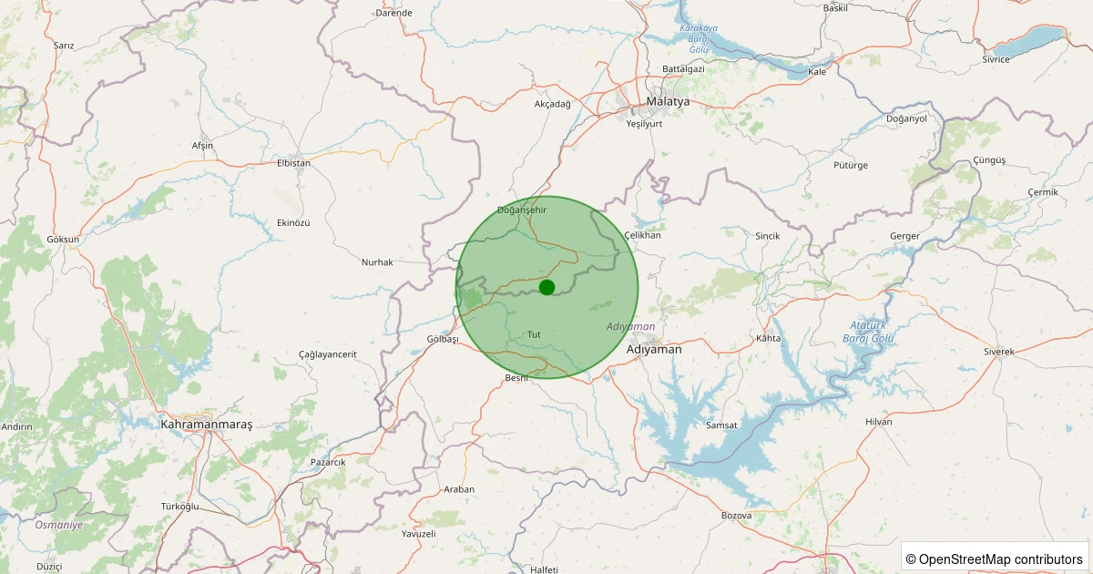 Son 7 gün içinde Doğanşehir - Gedikağzı noktasından 100 km yarıçap içerisinde meydana gelen diğer depremler: