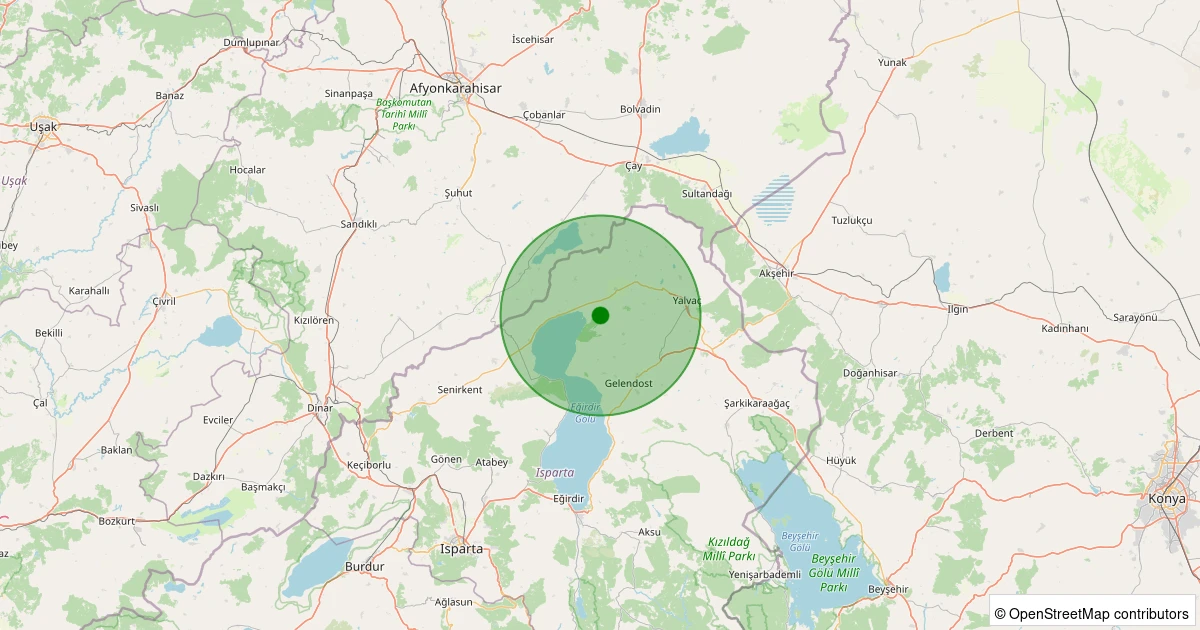 Son 7 gün içinde Yalvaç - Yukarı Tırtar Köyü noktasından 100 km yarıçap içerisinde meydana gelen diğer depremler: