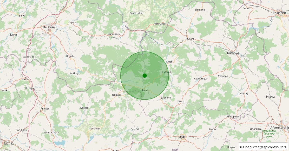 Son 7 gün içinde Simav - Yemişli Köyü noktasından 100 km yarıçap içerisinde meydana gelen diğer depremler: