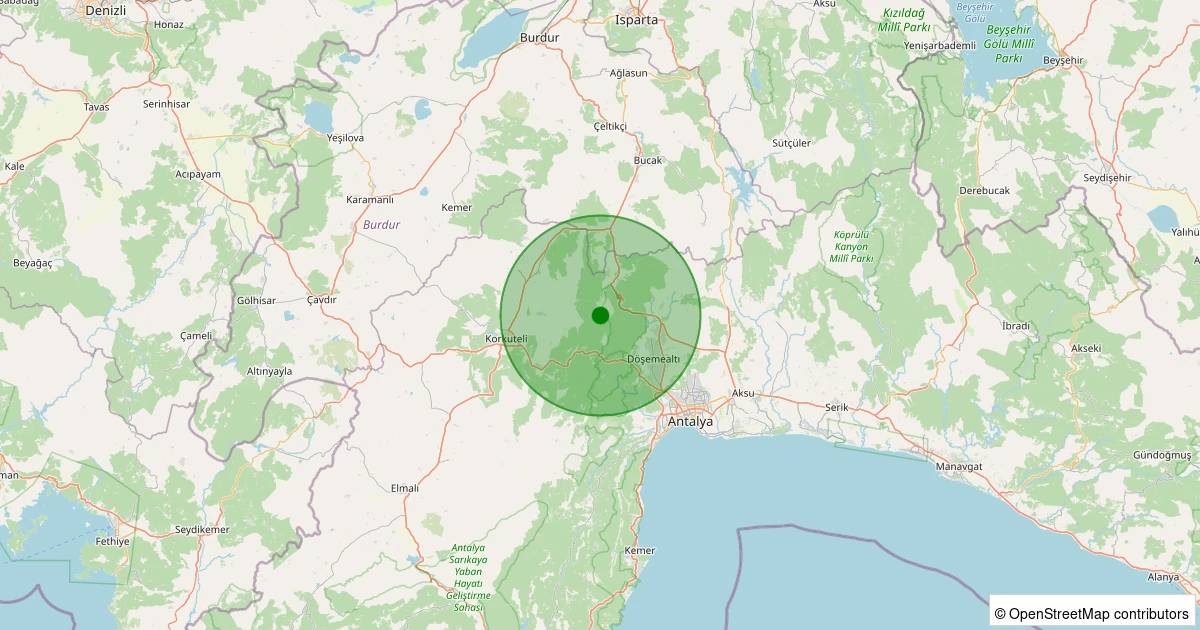 Son bir hafta içerisinde Antalya şehri Döşemealtı - Akkoç noktasından 100 km yarıçap içerisinde toplamda 24 deprem kaydedilmiştir. Bu depremlerden en büyüğü 3.5 büyüklüğünde ve en sığ odaklısı 2.00 kilometre derinlikte gerçekleşmiştir.
