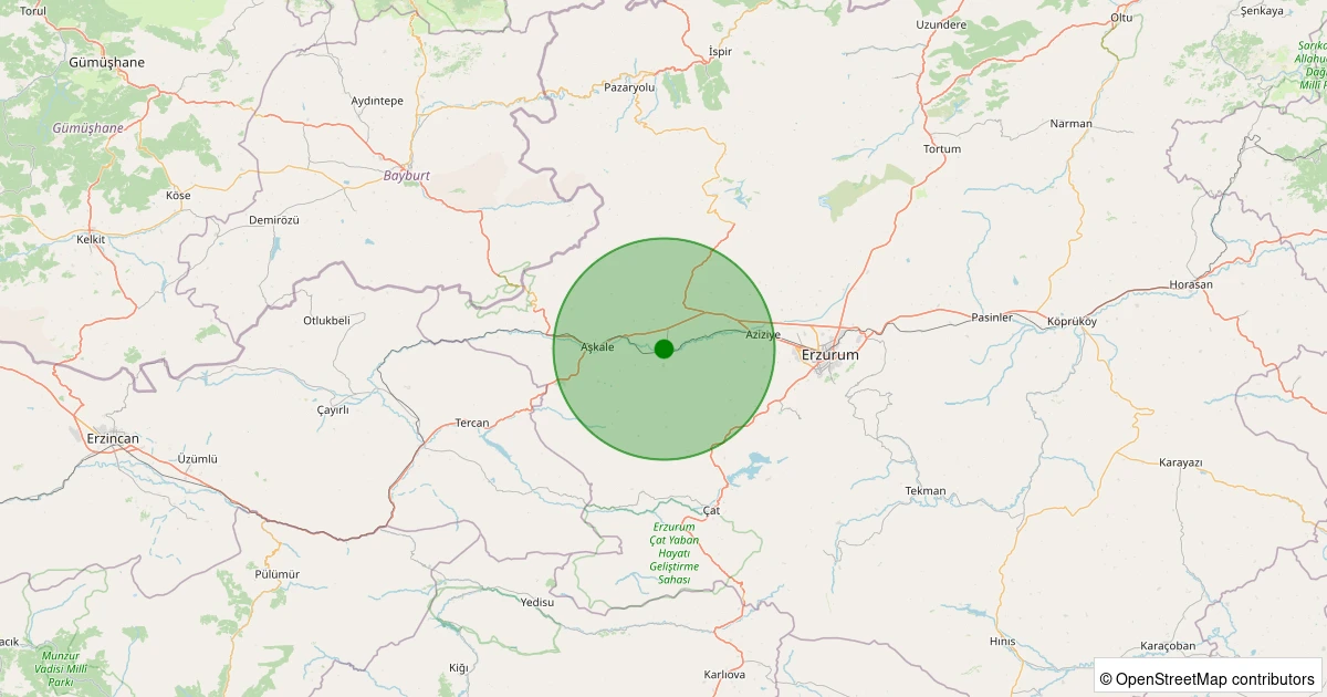 Son 7 gün içinde Aşkale - Tazegül noktasından 100 km yarıçap içerisinde meydana gelen diğer depremler: