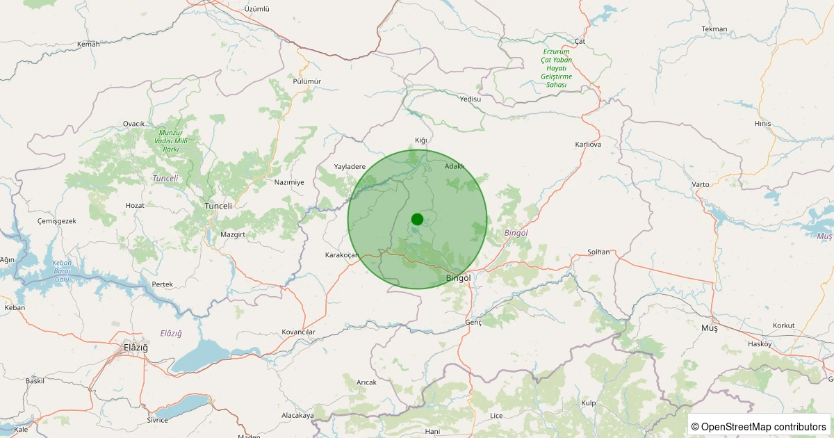 Son bir hafta içerisinde Bingöl şehri Merkez - Kuşkondu Köyü noktasından 100 km yarıçap içerisinde toplamda 23 deprem kaydedilmiştir. Bu depremlerden en büyüğü 2.0 büyüklüğünde ve en sığ odaklısı 6.90 kilometre derinlikte gerçekleşmiştir.