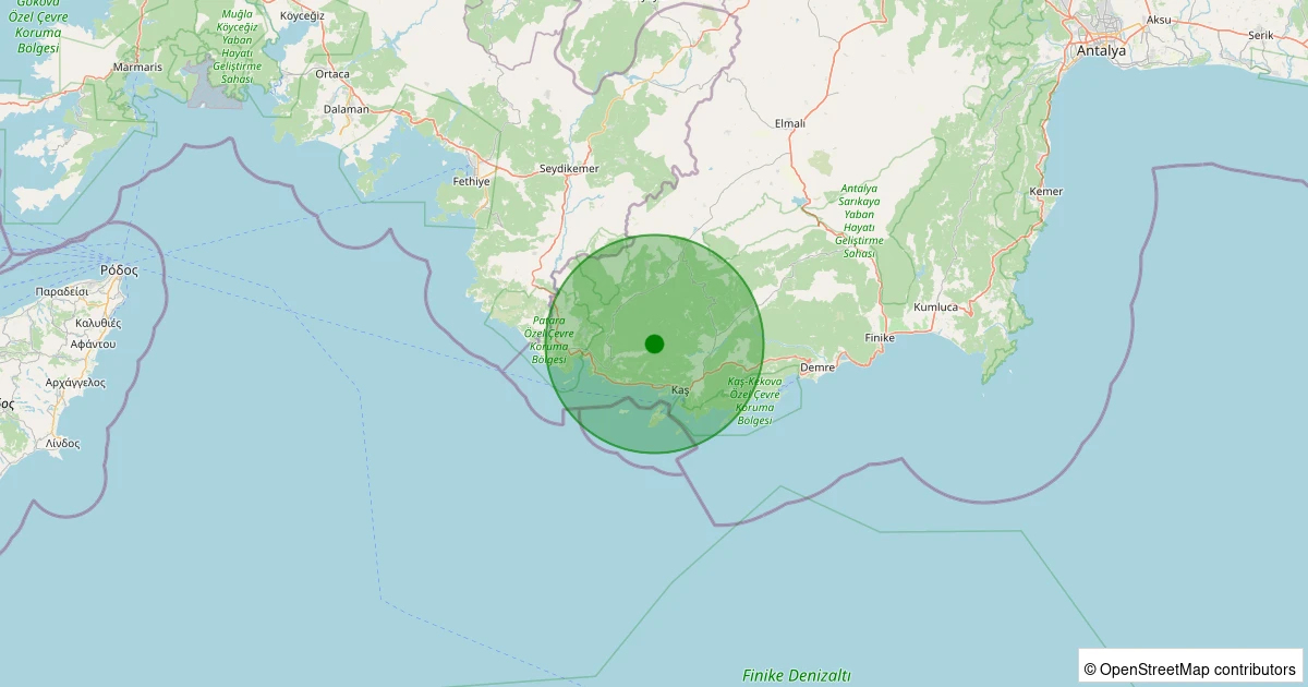 Son 7 gün içinde Kaş - Hacıoğlan noktasından 100 km yarıçap içerisinde meydana gelen diğer depremler: