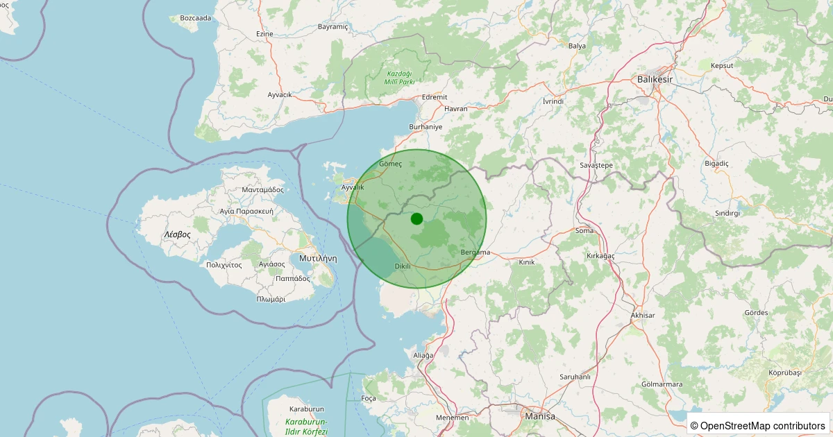 Son 7 gün içinde Dikili - Gökçeağıl noktasından 100 km yarıçap içerisinde meydana gelen diğer depremler:
