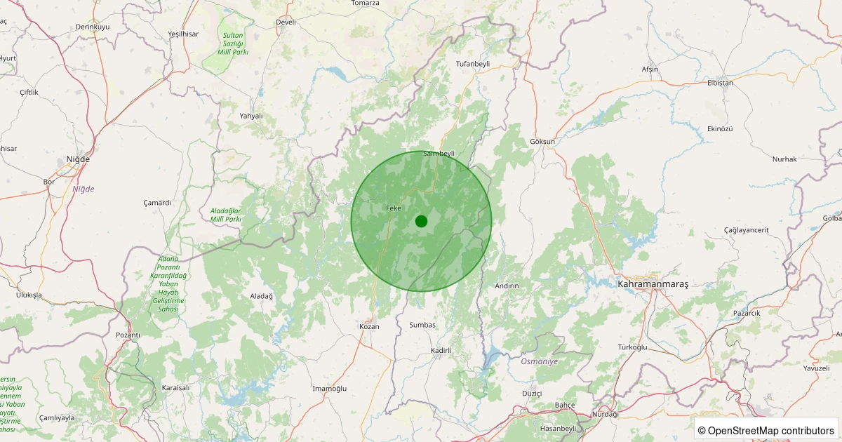 Son 7 gün içinde Feke - Paşalı noktasından 100 km yarıçap içerisinde meydana gelen diğer depremler: