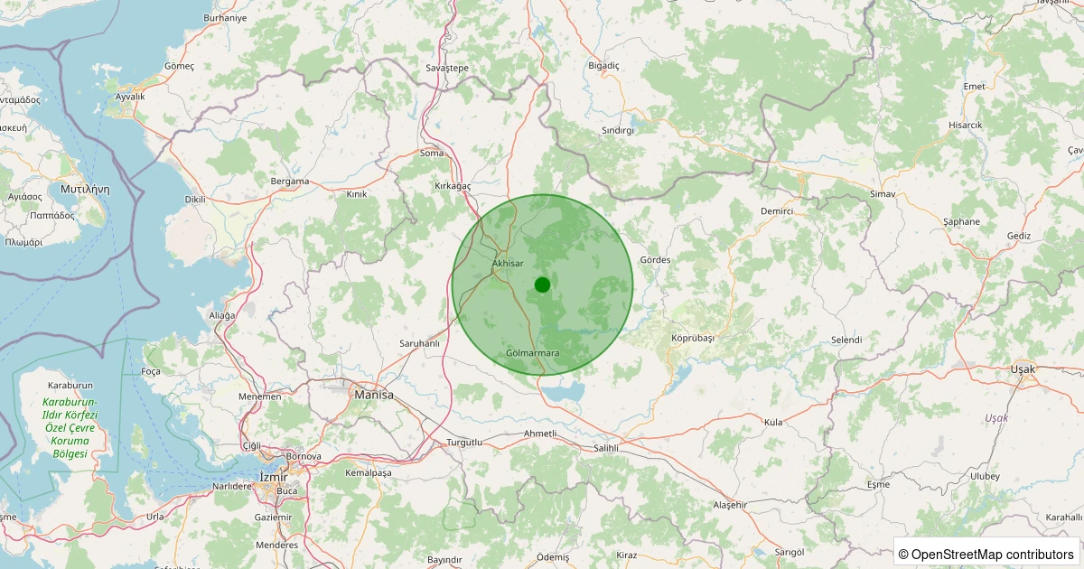 Son 7 gün içinde Akhisar noktasından 100 km yarıçap içerisinde meydana gelen diğer depremler:
