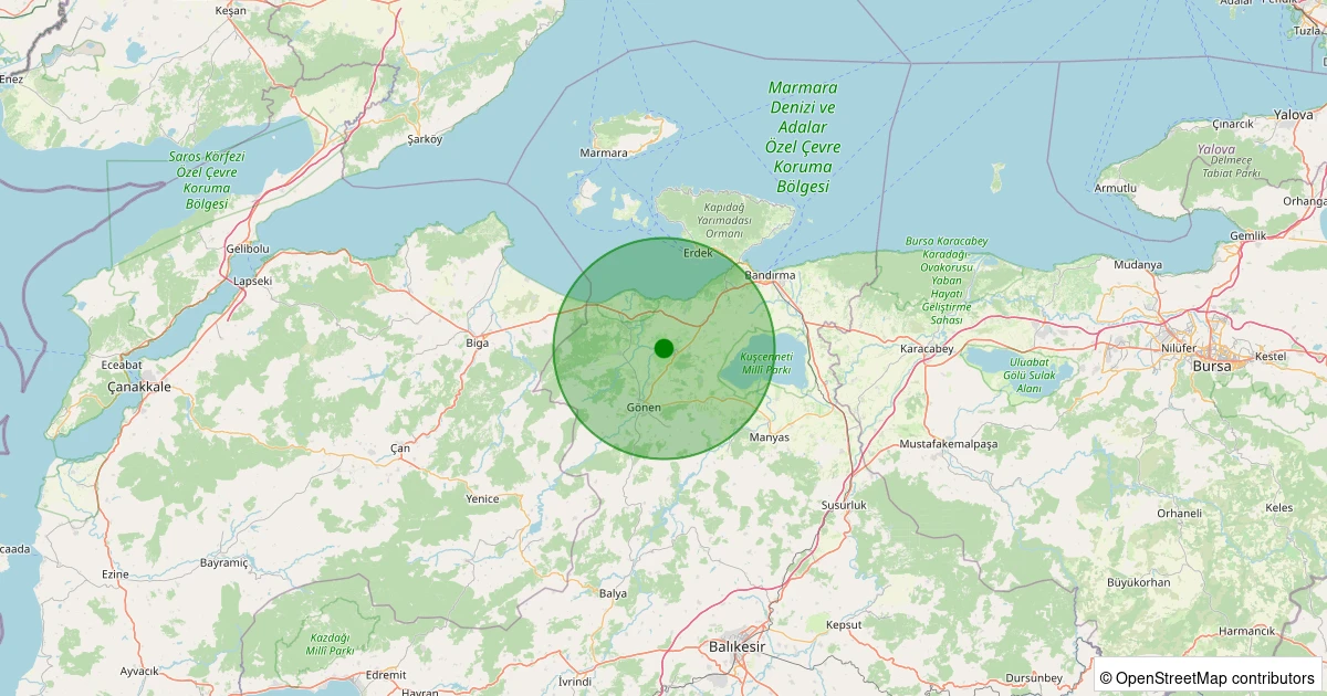 Son 7 gün içinde Gönen - Bostancı noktasından 100 km yarıçap içerisinde meydana gelen diğer depremler: