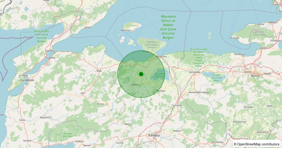 Son 7 gün içinde Gönen - Buğdaylı noktasından 100 km yarıçap içerisinde meydana gelen diğer depremler: