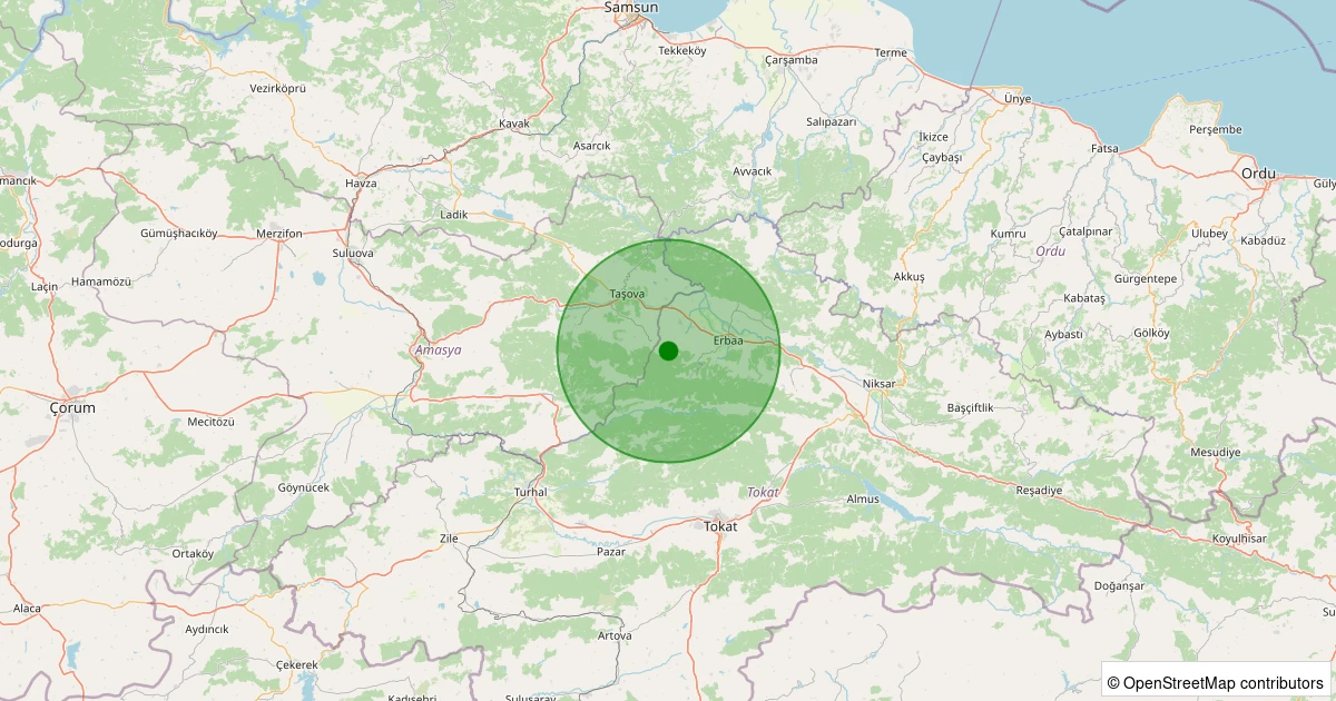Son 7 gün içinde Erbaa - Tanoba/Bahçelievler noktasından 100 km yarıçap içerisinde meydana gelen diğer depremler: