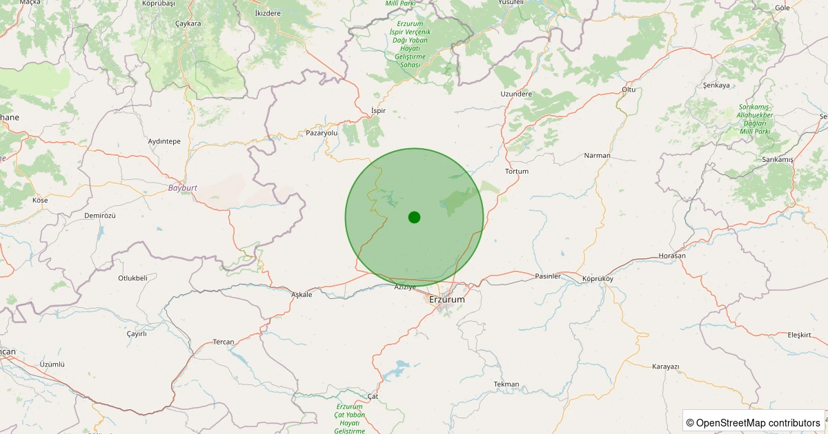 Son 7 gün içinde Aziziye - Kuzgun noktasından 100 km yarıçap içerisinde meydana gelen diğer depremler: