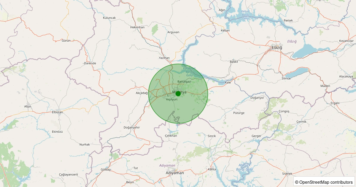 Son 7 gün içinde Battalgazi - İzzetiye noktasından 100 km yarıçap içerisinde meydana gelen diğer depremler: