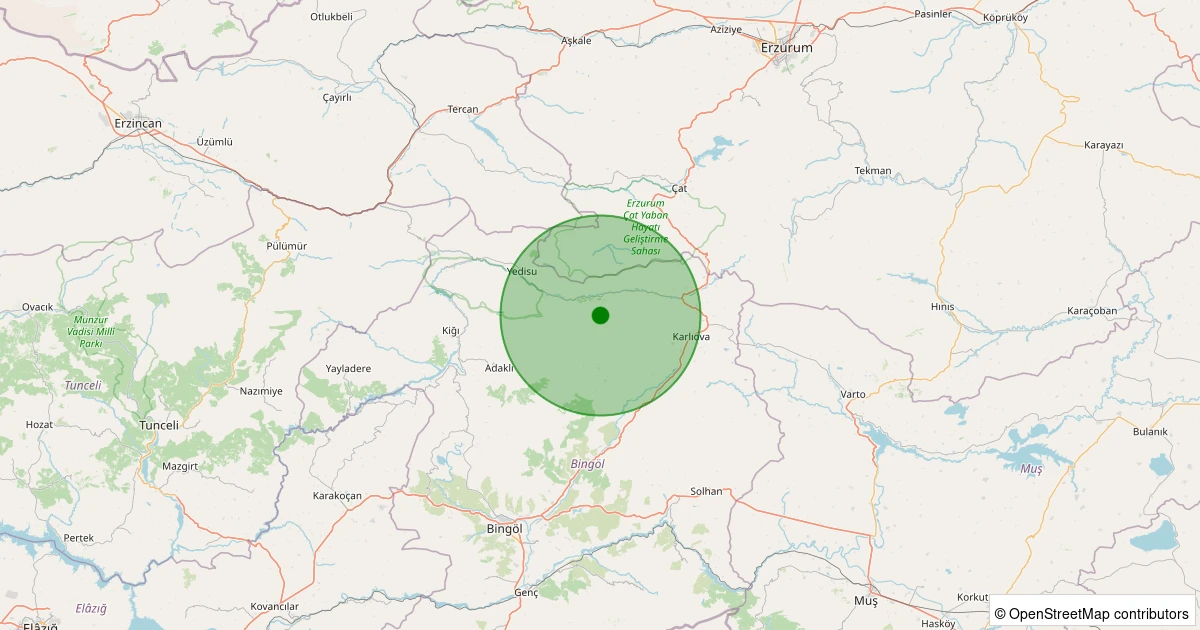 Son 7 gün içinde Karlıova - Kaynarpınar Köyü noktasından 100 km yarıçap içerisinde meydana gelen diğer depremler: