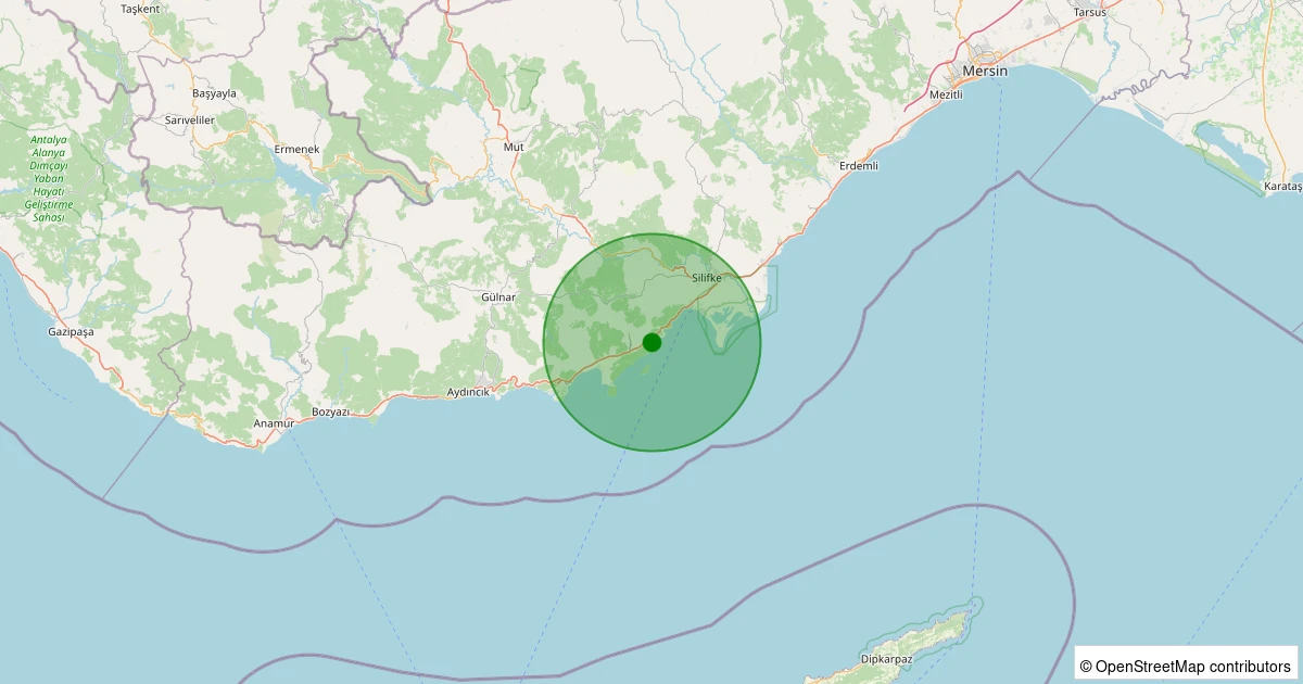 Son bir hafta içerisinde Mersin şehri Silifke - Akdere/Atatürk noktasından 100 km yarıçap içerisinde toplamda 8 deprem kaydedilmiştir. Bu depremlerden en büyüğü 1.9 büyüklüğünde ve en sığ odaklısı 0.00 kilometre derinlikte gerçekleşmiştir.