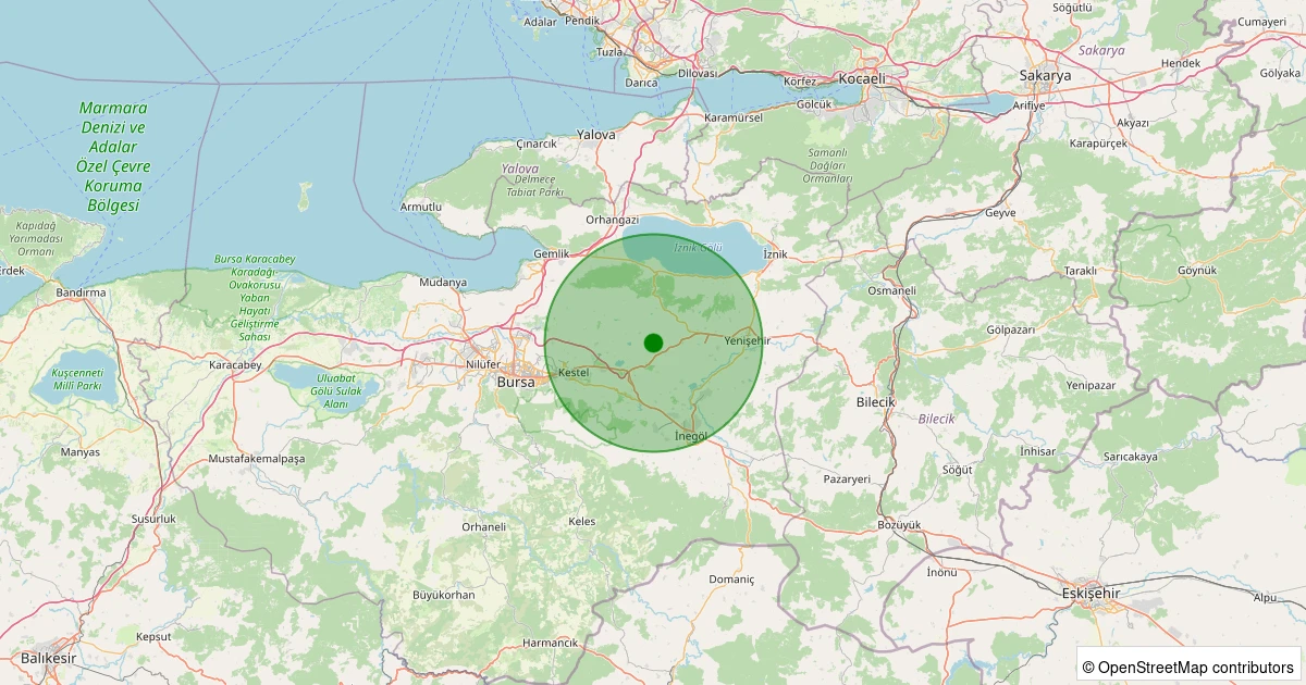 Son bir hafta içerisinde Bursa şehri Yenişehir noktasından 100 km yarıçap içerisinde toplamda 27 deprem kaydedilmiştir. Bu depremlerden en büyüğü 2.8 büyüklüğünde ve en sığ odaklısı 0.00 kilometre derinlikte gerçekleşmiştir.