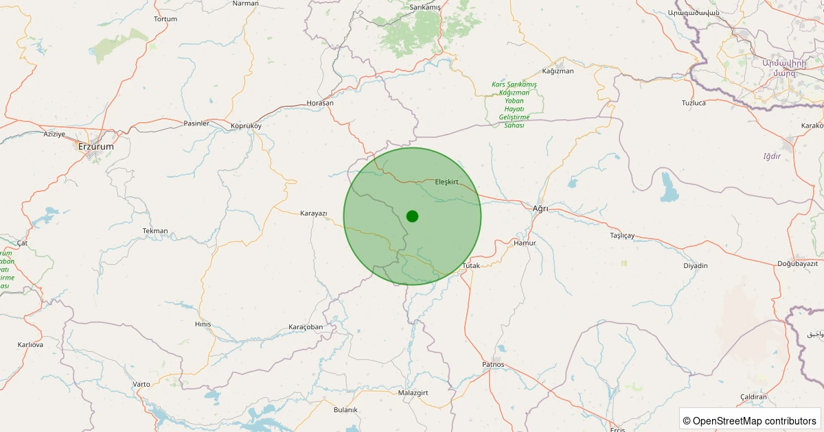 Son 7 gün içinde Eleşkirt - Yağmurlu Köyü noktasından 100 km yarıçap içerisinde meydana gelen diğer depremler: