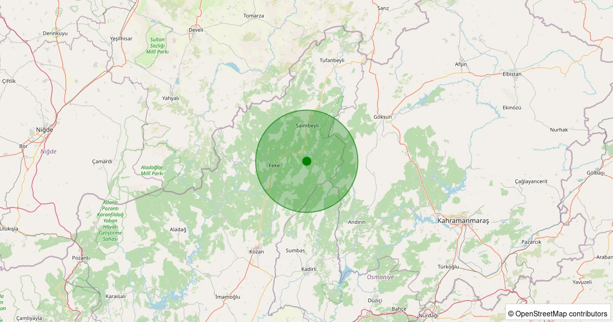 Son 7 gün içinde Saimbeyli noktasından 100 km yarıçap içerisinde meydana gelen diğer depremler: