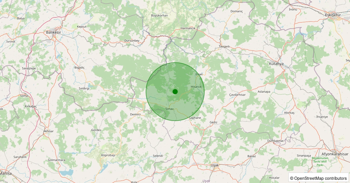 Son 7 gün içinde Simav - Yemişli Köyü noktasından 100 km yarıçap içerisinde meydana gelen diğer depremler: