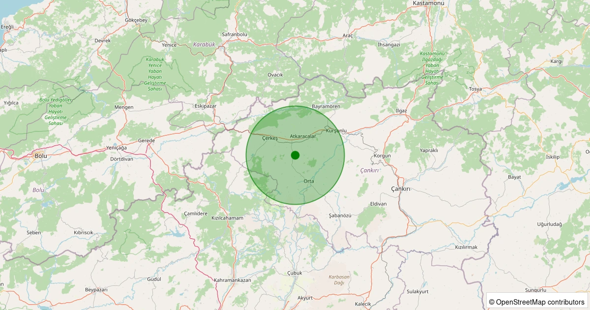 Son 7 gün içinde Çerkeş - Yalakçukurören noktasından 100 km yarıçap içerisinde meydana gelen diğer depremler: